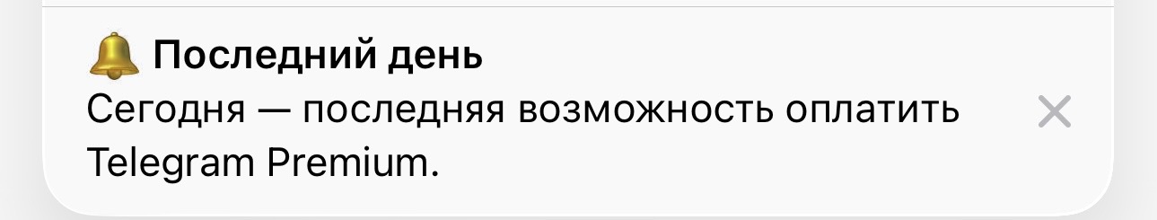 «В ближайшее время оформить Telegram Premium может стать технически невозможно в вашем регионе. Сегодня – последняя возможность оплатить Telegram Premium», – значилось в сообщении. В мессенджере добавили, что «пока еще сохраняется возможность предоплатить два года подписки».