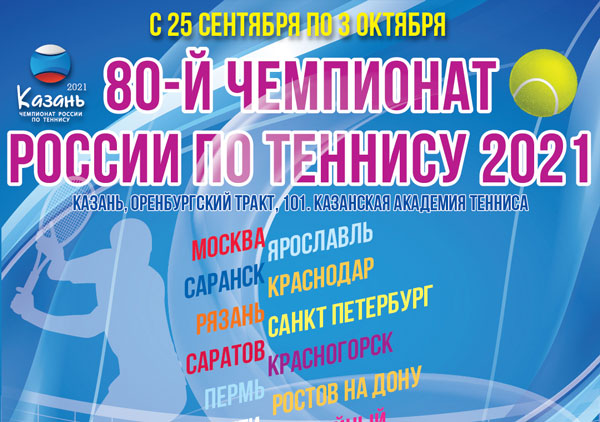 В субботу на кортах Казанской академии тенниса стартовал юбилейный, 80-й чемпионат России. Татарстан на этом турнире представит большая группа спортсменов, среди которых будут Илья Симакин, Марат Шарипов, Тимур Киямов, Полина Кудерметова, Елизавета Морозова, Амелия Тарасова, Виолетта Бородина и другие сильнейшие теннисисты республики.