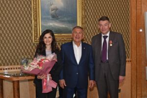 Также Рустам Минниханов вручил Андрею Каприну и Оксане Драпкиной госнаграды РТ — медали «100 лет образования ТАССР»