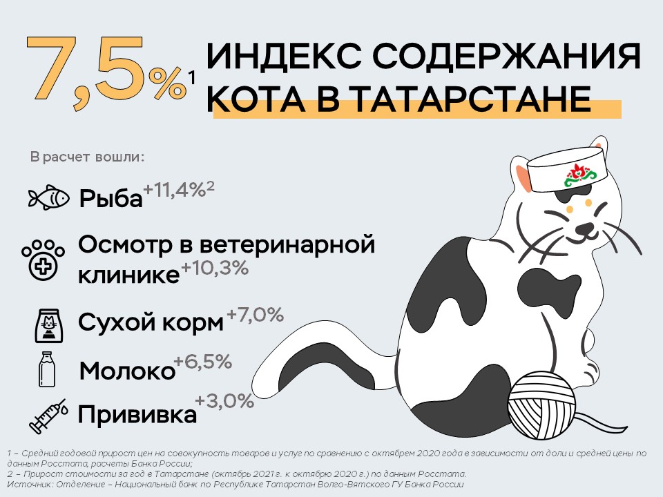 За год стоимость содержания кошки в Татарстане увеличилась на 7,5%