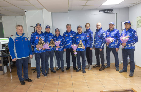 По традиции в торжественной обстановке в аэропорту «Бегишево» команду встретили и поздравили руководители «КАМАЗа», мэр Набережных Челнов Наиль Магдеев, журналисты, болельщики, а также родственники и друзья. С успешным выступлением команду от имени многотысячного коллектива заводчан поздравил первый заместитель генерального директора «КАМАЗа» – исполнительный директор Юрий Герасимов.