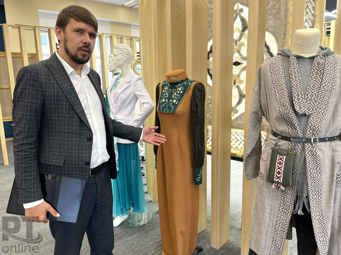 – Мы ставим перед ним задачу – какую одежду хотим видеть с применением татарских орнаментов, изображения татарстанского флага. Он выдает первоначальную базовую модель, а потом уже наши дизайнеры дорабатывают ее, вносят свои коррективы.