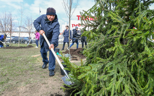 Вместе с Президентом в посадке саженцев участвовали работники казанских предприятий, члены движения «Волонтёры Победы».