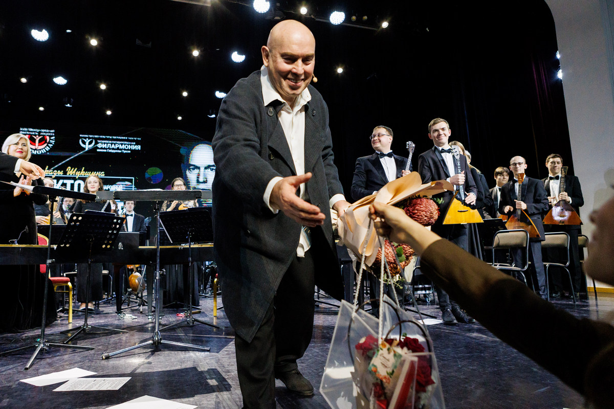 «Притяжением вечера» 10 декабря стал народный артист России Виктор Сухоруков. Моноспектакль, или музыкально-драматический концерт, шел под аккомпанемент Академического оркестра русских народных инструментов имени Н.Н.Некрасова. На сцене под руководством дирижера Евгения Волчкова играли несколько десятков музыкантов. Мелодии, фольклор идеально сошлись в программе с рассказами Шукшина.