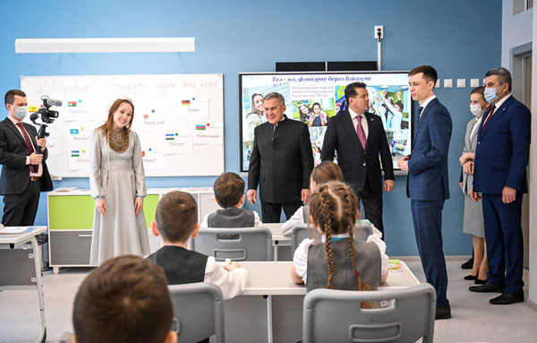 Президенту рассказали, что за время работы лицея было проведено множество мероприятий, в том числе цикл обучающих семинаров для учителей татарского языка, в рамках которого педагоги делились опытом преподавания родного языка и инновационными разработками в его изучении.
