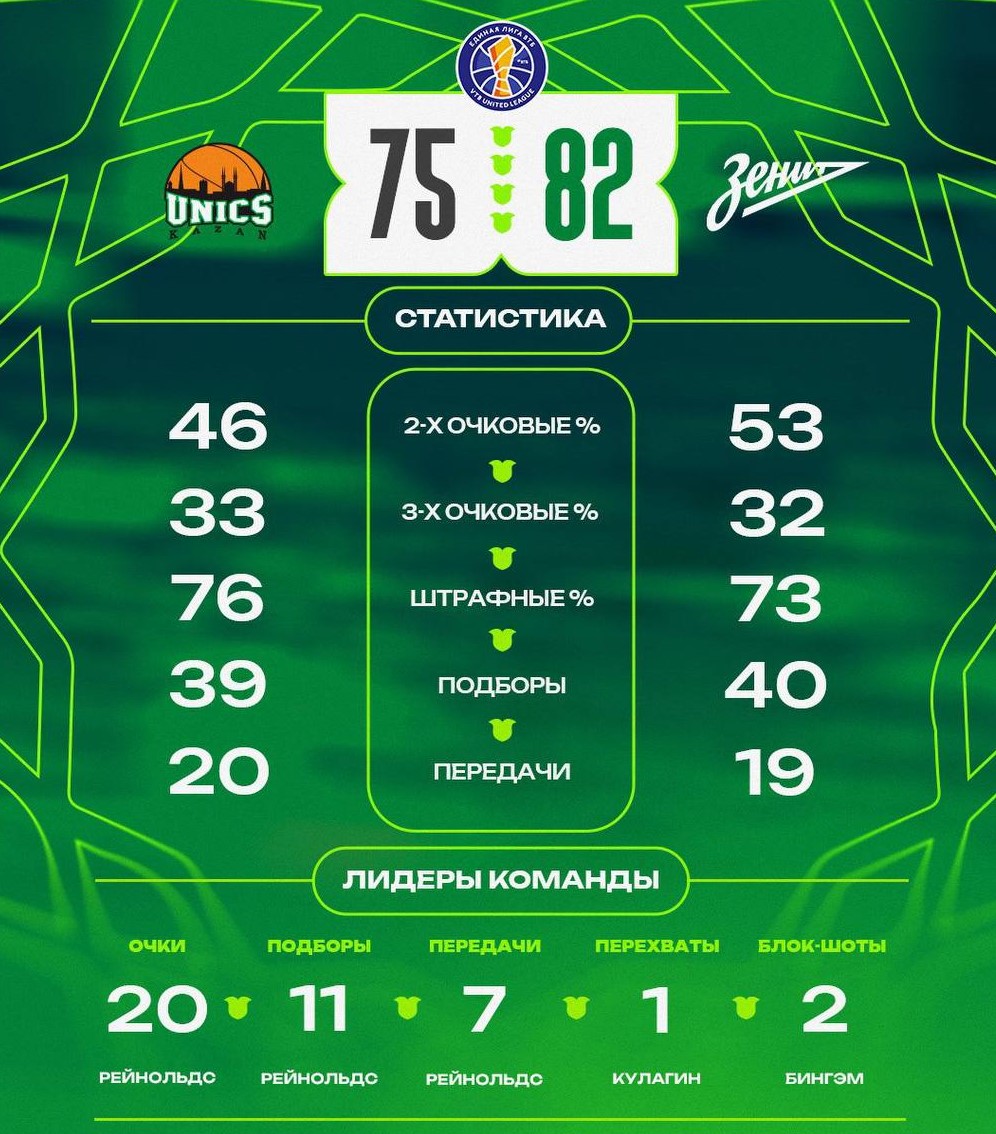 У казанцев самым результативным игроком матча стал Джален Рейнольдс: он набрал 20 очков, сделал 11 подборов и семь передач, пплюс блок-шот.