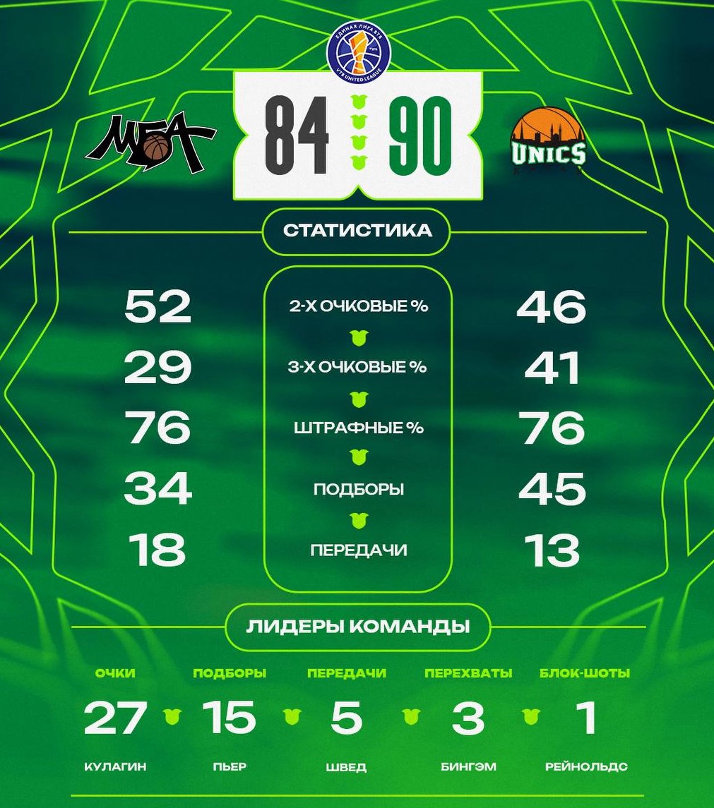 Казанский баскетбольный клуб УНИКС в Москве вырвал победу у местного МБА-МАИ.