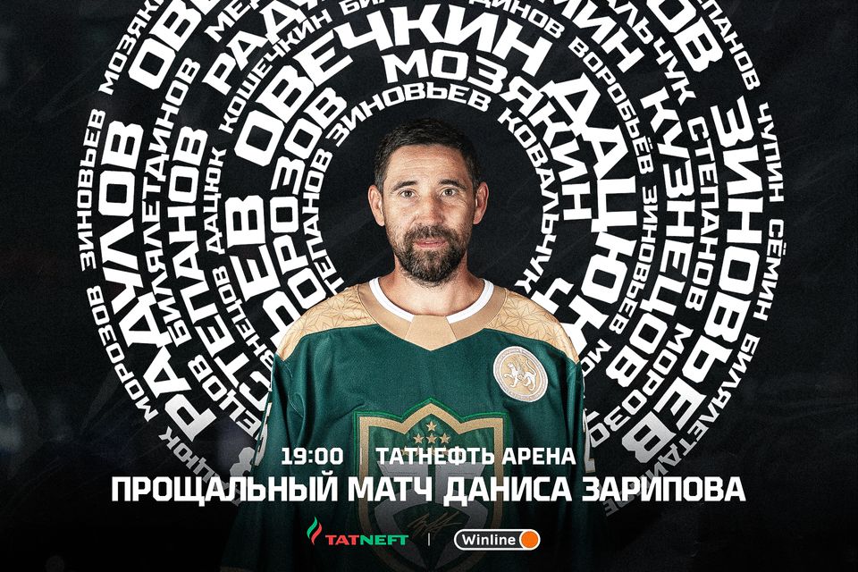 9 августа в «Татнефть Арене» состоится прощальный матч трёхкратного чемпиона мира, шестикратного чемпиона России, пятикратного обладателя Кубка Гагарина Даниса Зарипова. В гала-матче примут участие партнёры форварда по клубам и сборной России: Алексей Морозов, Сергей Зиновьев, Александр Радулов, Александр Овечкин, Павел Дацюк, Илья Ковальчук, Сергей Мозякин и другие, сообщает сайт "Ак Барса".