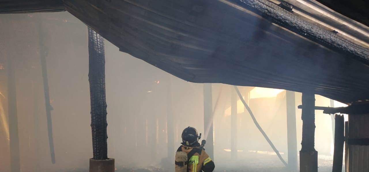 Возгорание произошло внутри ангара (размерами в плане 40 х 60 м) с сеном, принадлежащем КФХ, локализация на площади 860 кв.метров. В 14.35 пожарным удалось ликвидировать открытое горение.