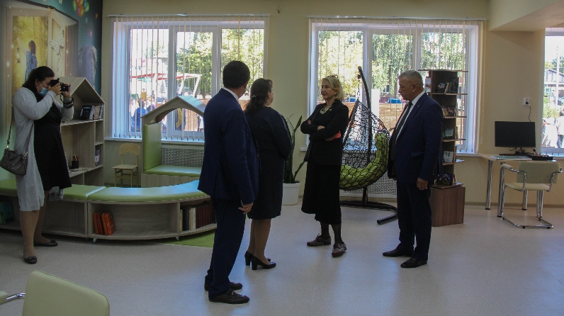 В библиотеке обновили мебель (подвесные качели, пуфы, стеллажи и др.) и установили современное оборудование (компьютеры, проекторы для кинозала и планетария и др.). К примеру, у юных читателей появилась возможность рисовать песком на световом столе - это развивающая система, которая стимулирует творческие и интеллектуальные способности малышей.