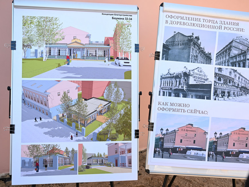В центре Казани ведется реконструкция ансамбля домов купца Щетинкина (Баумана, 32 и 34). Здания XIX века долгое время пребывали в аварийном состоянии, после обновления здесь откроется бутик-отель на 25 номеров с рестораном.