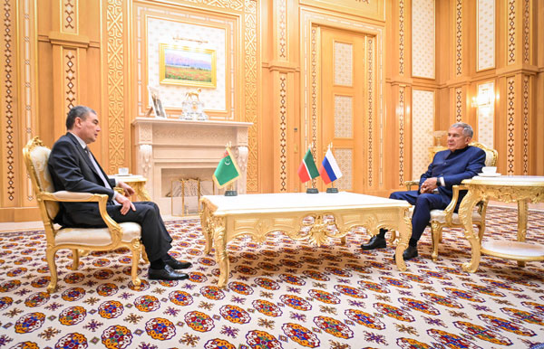 Сегодня же в рамках рабочего визита в Ашхабад Президент Татарстана Рустам Минниханов встретился с Президентом Туркменистана Сердаром Бердымухамедовым.