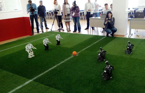 Ну скажем прямо: матч показал, что конкуренцию казанские роботы людям в футболе составят еще не скоро. Впрочем, и матч-то был пока что тренировочный и имел цели больше учебные, нежели достижение каких-то спортивных результатов. А играли в товарищеской встрече команды роботов Инженерного института и Высшей школы информационных технологий и информационных систем (ИТИС) КФУ.