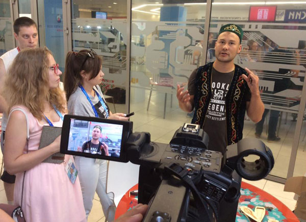 Удалось приобщиться к древнему инструменту и журналистам пресс-центра. Большинство из тех, кто опробовал кубыз в деле, с легкостью справились с задачей. Игра действительно шла от души, по наитию.