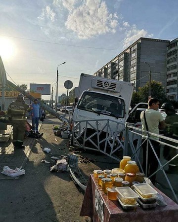 Сегодня в Казани на улице Ломжинская грузовой автомобиль Hyundai вылетел на дорожное ограждение, возле которого был организован торговый ряд и работали люди. Видео с места происшествия появилось в соцсетях.