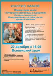 В Храме всех религий в Казани при поддержке Государственного комитета Республики Татарстан по туризму состоится презентация книги Ильгиза Ханова «Татарские красавицы и шамаили. Исламское искусство в Международном культурном центре духовного единения».