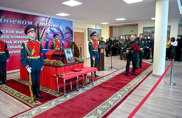 Заместитель командующего войсками Центрального военного округа генерал-майор Рустам Миннекаев зачитал указ Президента Российской Федерации от 25 марта 2022 года о присвоении звания Героя Российской Федерации Дамиру Гилемханову. Награду – звезду Героя Российской Федерации – передали семье погибшего.
