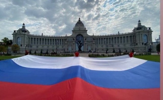 В Казани в честь Дня государственно флага России развернули триколор в 150 квадратных метров. Организаторами флешмоба стали активисты ДОСААФ РТ и «Молодёжки ОНФ».