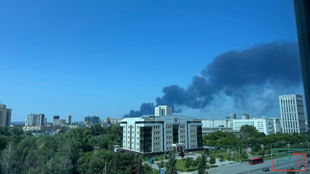 Очевидцы сняли на фото столб дыма — он виден во многих точках Казани.