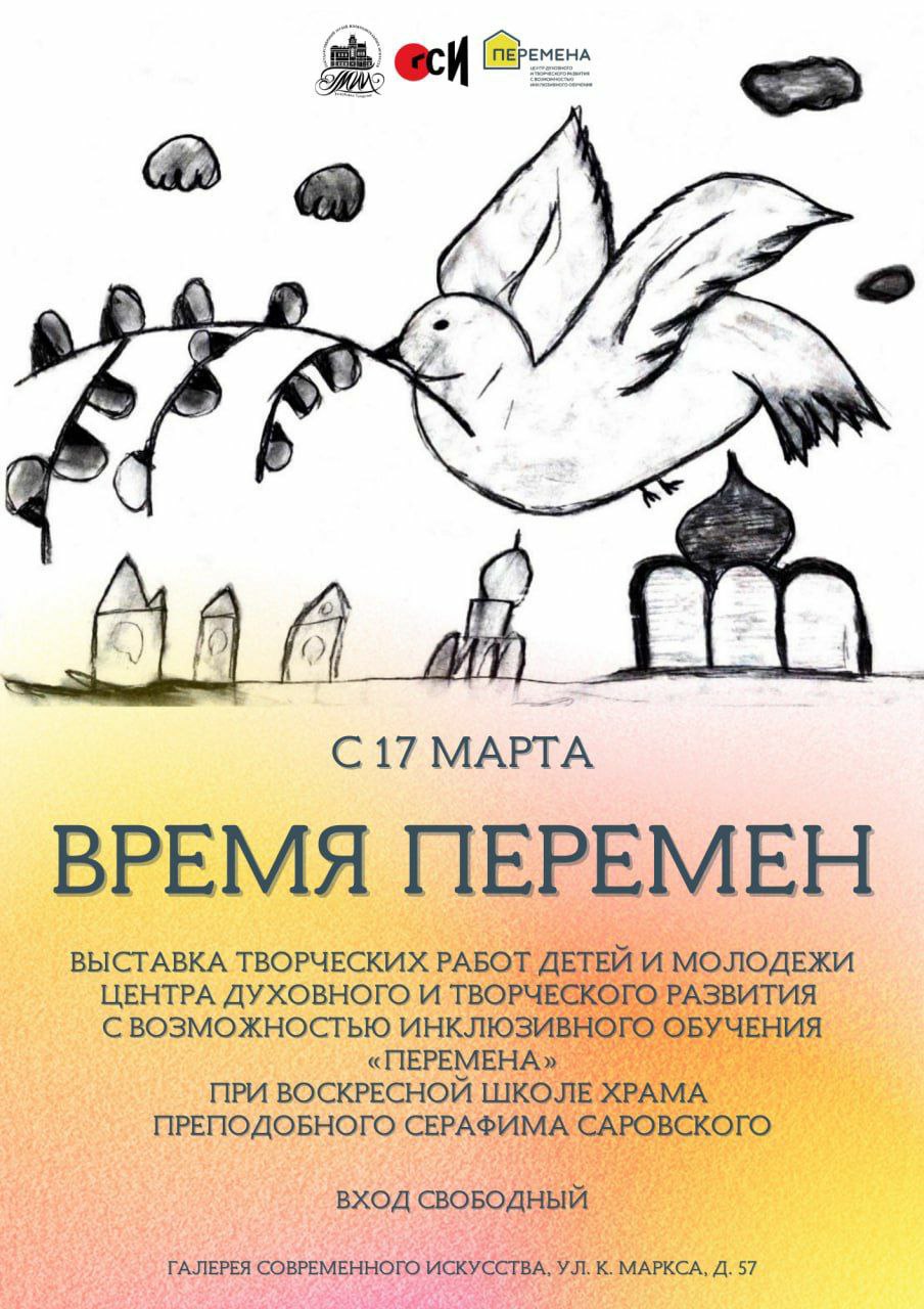 17 марта в 16:00 в Галерее современного искусства ГМИИ РТ в Казани состоится открытие инклюзивной выставки «Время перемен». На выставке будут представлены работы нормотипичных детей и людей с ограниченными возможностями здоровья Центра духовного и творческого развития с возможностью инклюзивного обучения «Перемена».