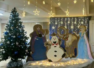 Герои мультфильма "Холодное сердце" радуют пассажиров на станции метро "Суконная Слобода". Пассажиры могут выбрать фон для новогодней фотографии по своему вкусу.