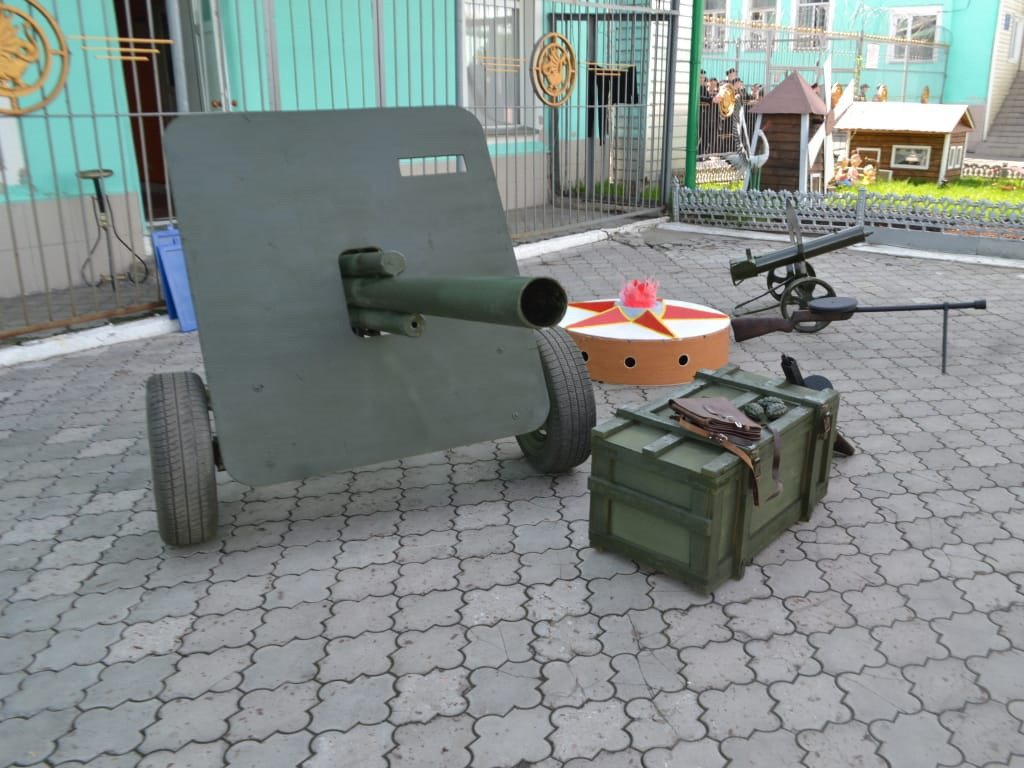 Под контролем руководства учреждения группа осужденных, занятых на производстве и имеющих навыки работы с металлом, изготовили макеты артиллерийского орудия, пулемета Максима, ручного пулемета Дегтярева, пистолета-пулемета Шпагина. Экспонаты установили на центральной аллее учреждения.