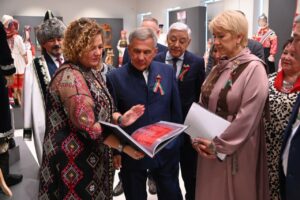 Раис Татарстана Рустам Минниханов в Присутственных местах Казанского Кремля осмотрел выставку воссозданной традиционной одежды «Казанское Поволжье: образы народной культуры». Также там побывал Председатель Госсовета РТ Фарид Мухаметшин.