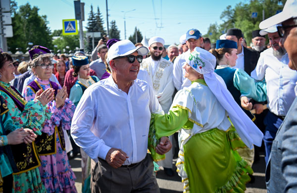 На международный шахтёрский Сабантуй прибыли почётные гости из всех горнодобывающих регионов России, а также заслуженные шахтёры из Донбасса, Казахстана и Кыргызстана. Праздничные мероприятия начались с традиционного обхода Рустамом Миннихановым и Сергеем Цивилёвым национальных подворий и площадок декоративно-прикладного искусства, где национально-культурные автономии и диаспоры, проживающие на территории Кемеровской области, представили гостям свою культуру и традиции. Стоит отметить, что татарский праздник Сабантуй в Новокузнецке организован при активном участии и взаимодействии с Лениногорским районом Татарстана.
