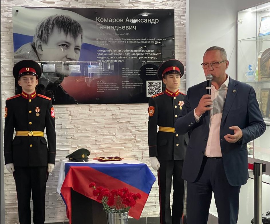 В Нижнекамске открыли мемориальную доску в честь героя-журналиста Александра Комарова. В церемонии принял участие руководитель Республиканского агентства по печати и массовым коммуникациям «Татмедиа» Айдар Салимгараев.
