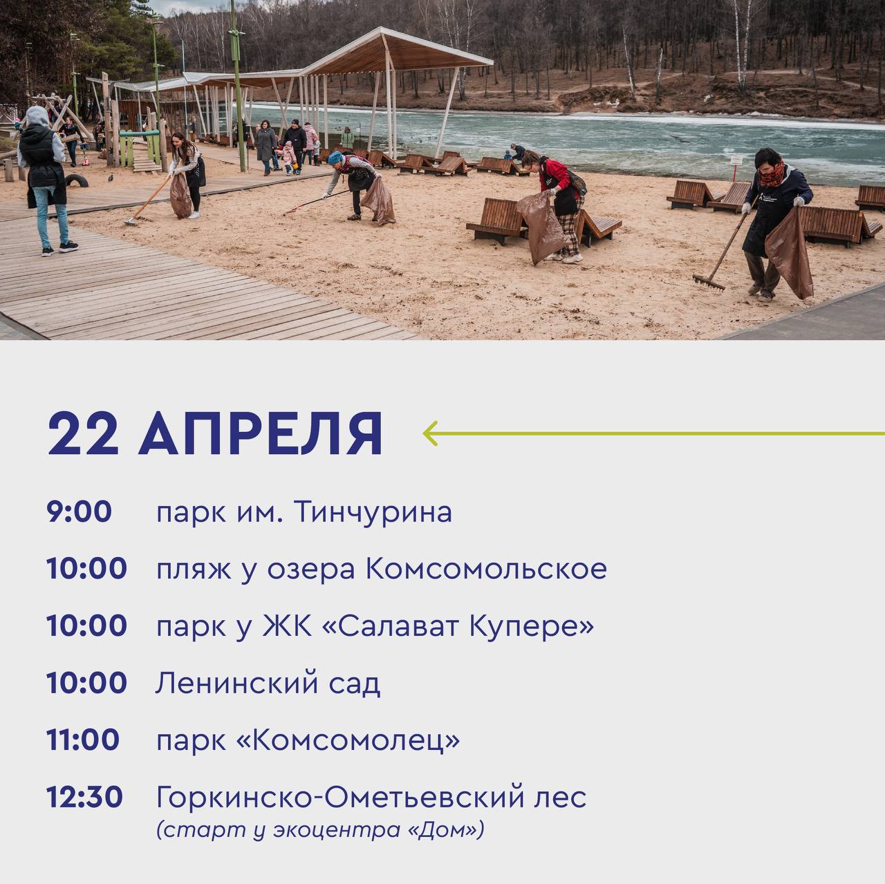 Традиционные субботники пройдут парке им. Тинчурина, на пляже у озера Комсомольское, Ленинском саду, парке «Комсомолец», Горкинско-Ометьевском лесу и парке им. Урицкого.