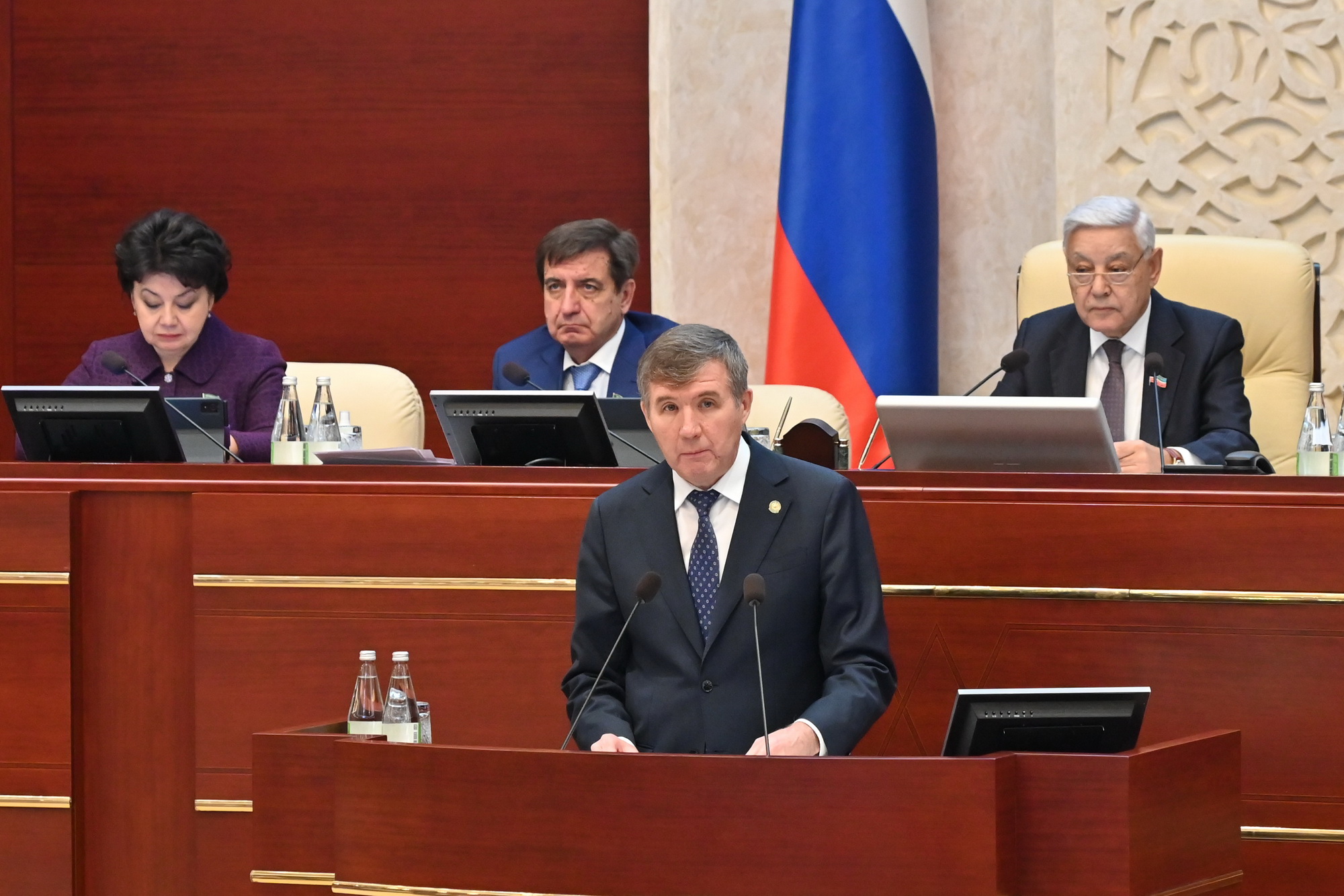Прогноз бюджета учитывает национальные цели развития страны и сохраняющиеся внешние и внутренние риски. К ним относятся усиление санкционного давления, включая вторичные санкции, дефицит кадров и высокая ключевая ставка. Об этом в своем докладе рассказал министр экономики РТ Мидхат Шагиахметов.