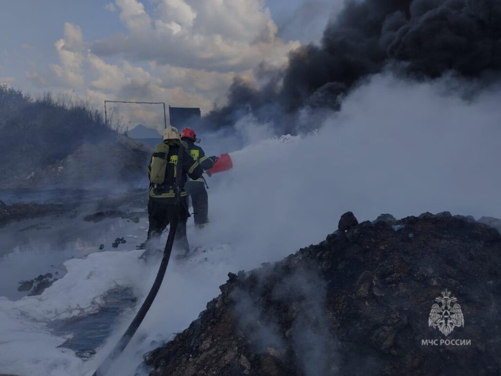 Сообщение о пожаре поступило в 15.35. К моменту прибытия пожарных огонь охватил металлический ангар и шлам на открытой территории. Потушить открытый огонь удалось к 17.05. Теперь специалистам Госпожнадзора предстоит выяснить причины произошедшего.
