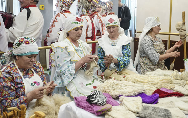 Вот, к примеру, нурлатцы. Свою программу они представили на днях в культурном центре «Чулпан». Их интерактивную и концертную площадки посетили свыше 400 гостей. Вместе с нурлатскими мастерами они пробовали себя в различных ремёслах, а также в изготовлении хушпу – женского чувашского национального головного убора. Здесь же, на интерактивной площадке, свои изделия представили воспитанники студии «Весёлые гончарята» при Мамыковском доме культуры, а мастер по дереву Юрий Егорович Тимофеев из деревни Средняя Камышла на глазах у зрителей вырезал коня, который, как известно, украшает герб города Нурлата. Многолюдно было и на площадке, где проходила дегустация национальных угощений: катыка, приготовленного по рецептам жителей сёл Светлое Озеро и Кичкальня, фаршированной курицы (тутырган тавык), хвороста по-татарски «Урама» и других.