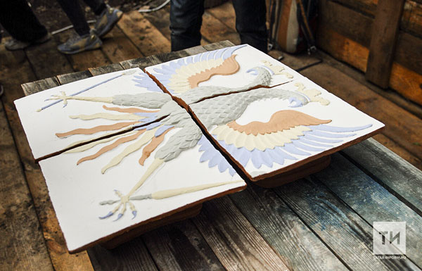 Главным из них стала закладка изразцов с геральдическим орлом в специальную дровяную печь, воссоздающую устройство горна, который был найден российскими археологами в Ново-Иерусалимском монастыре под Москвой. Печь разместили в посадской части Свияжска, где исторически были гончарные мастерские, а руководил процессом обжига художник-керамист из Гжели Василий Рыженок. Он же, кстати, и сконструировал печь, на базе которой в дальнейшем планируется проводить арт-резиденции керамистов.