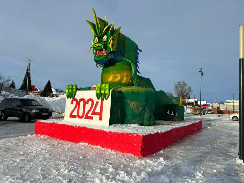 Над символом 2024 года работники предприятий и организаций района трудились целую неделю. Дракон сделан изо льда, снега и соломы, окрашен в зеленый цвет и имеет устрашающе-озорной вид. Но жителей и гостей района это не пугает – они приходят к нему фотографироваться и полюбоваться его мощью и красотой.