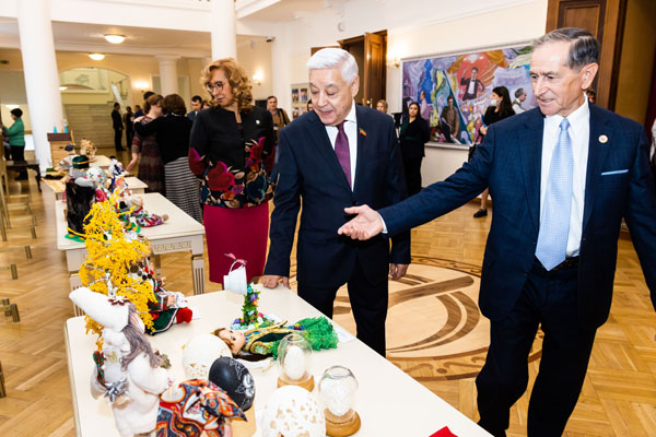 Настоящим украшением стала выставка изделий художественного творчества седовласых мастеров – результат недавнего конкурса, организованного Республиканским советом ветеранов и выигравшего грант Правительства Татарстана. Не было отбоя от желающих сфотографироваться рядом с оригинальными экспонатами. Например, с деревянной скульптурой упряжки разудалых лошадей в исполнении Махмуда Хакимзянова из Атнинского района и с большой фигурой лукавого Шурале, изготовленной 90-летним Илисаем Имамовым из Тукаевского района.