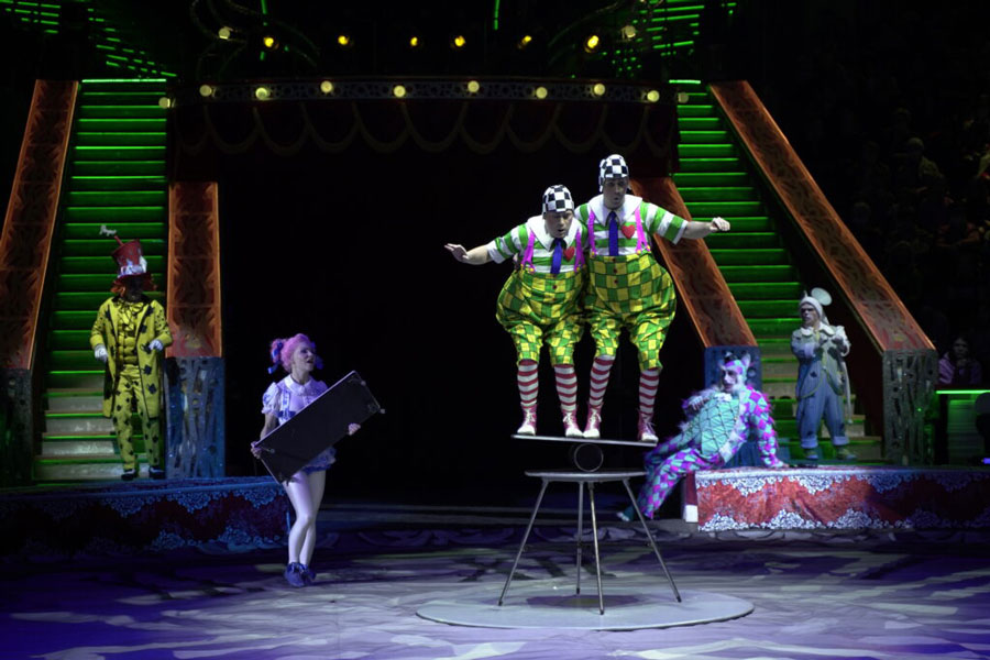 Фееричный клоун Акула (Анатолий Окулов) предстанет в роли Чеширского кота. В программе также акробатические номера, воздушные гимнасты, эквилибр, чревовещание и многое другое.