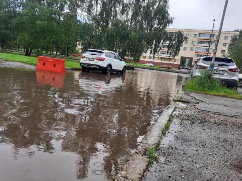 В Нижнекамске во дворе дома №27 на улице Корабельной был произведён ремонт дорожного покрытия. При этом не учли высоту дворовых дорог (разница составила пять сантиметров), и теперь вся вода во время дождя стекает в наш двор (на снимке). Ширина рукотворного моря – около 40 метров.