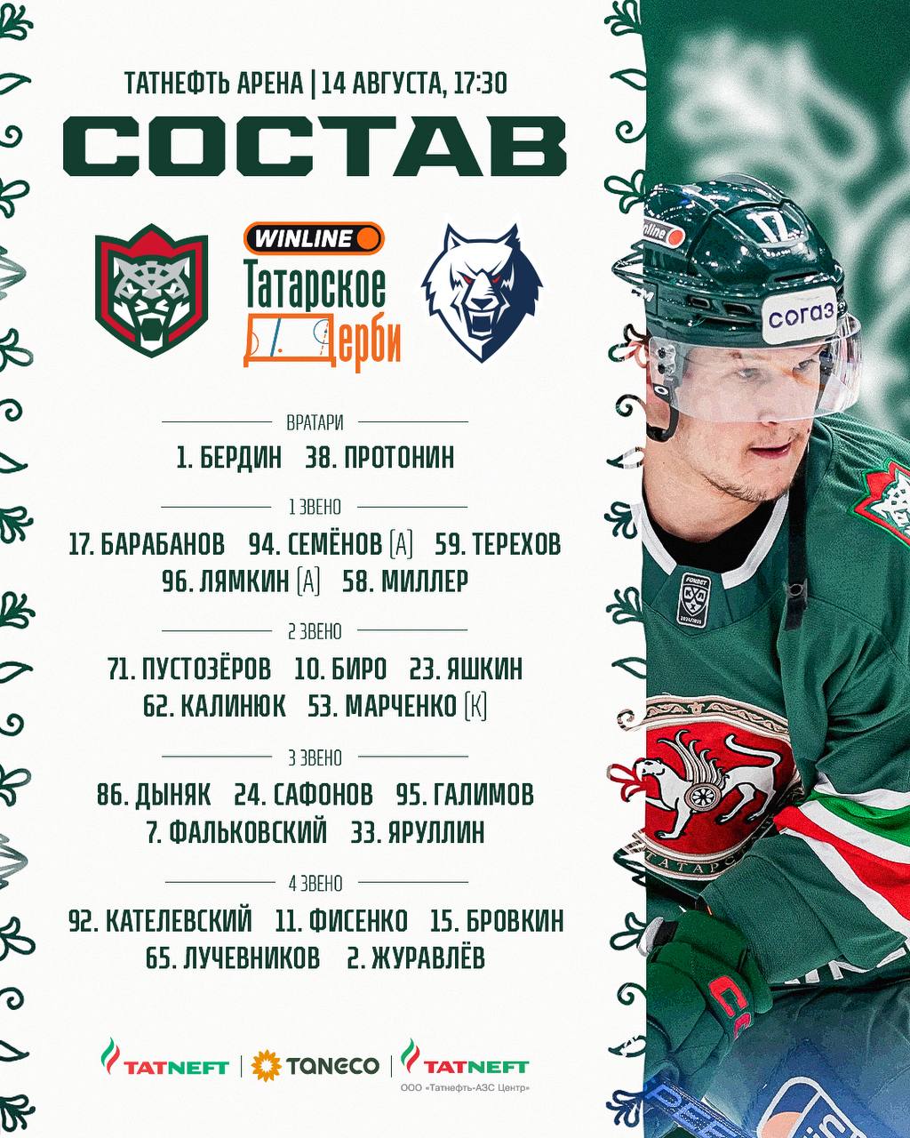 Вратарь Михаил Бердин будет защищать ворота «Ак Барса» в матче с «Нефтехимиком» - «татарское дерби» начнется в 17.30. Об этом сообщает пресс-служба клуба.