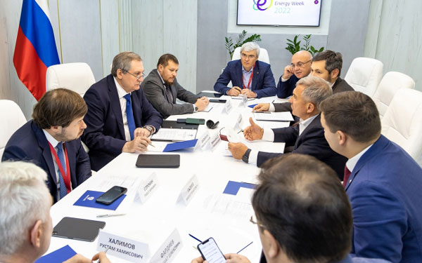 Министр энергетики России Николай Шульгинов и Президент Татарстана Рустам Минниханов обсудили развитие топливно-энергетического комплекса региона. Встреча состоялась 12 октября на полях Российской энергетической недели – 2022.