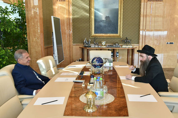 С главным раввином Казани и Республики Татарстан Ицхаком Гореликом встретился Раис Татарстана Рустам Минниханов. Встреча прошла 14 марта в Доме Правительства РТ.