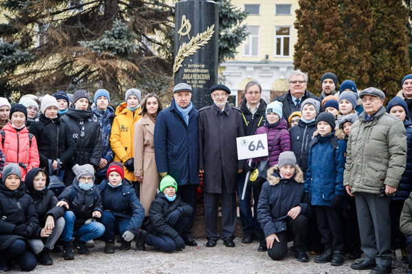 До начала торжественной церемонии Иджад Сабитов и Ильшат Гафуров возле памятника Лобачевскому встретились с учениками лицея КФУ.