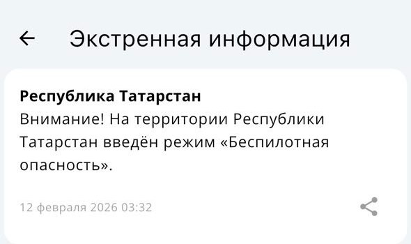 Минувшей ночью в РТ также вводился режим беспилотной опасности и угроза атаки беспилотников, жителей призывали спуститься в укрытие, а школы и детсады переводились на дистант. Аэропорты Казани и Нижнекамска были закрыты.
