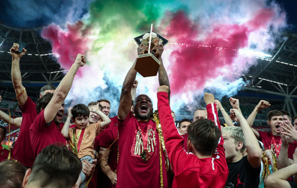 Зазвучала традиционная композиция группы Queen We Are The Champions, и Наиль Измайлов и исполнительный директор ФНЛ Александр Атаманенко вручили капитанам «Рубина» Александру Мартыновичу и Олегу Иванову 12-килограммовый трофей за победу. Кубок не является переходящим и останется в казанском клубе.