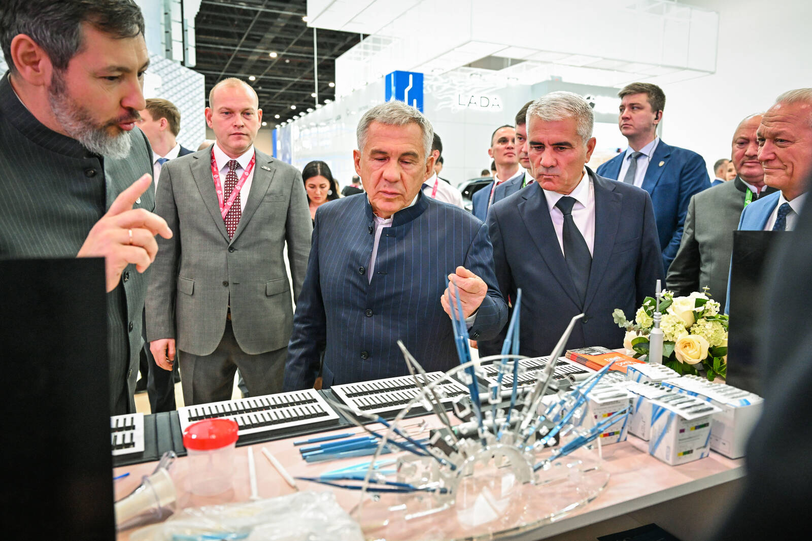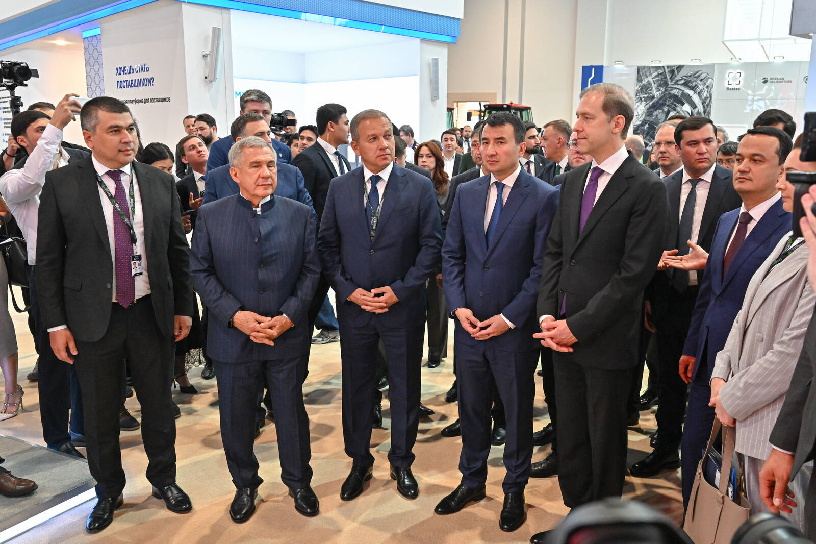 После пленарной сессии Рустам Минниханов принял участие в обходе выставки «Иннопром. Центральная Азия». Здесь участвуют порядка 500 компаний со своими стендами. Среди основных стран-участниц: Россия, Китай, Беларусь, Казахстан, Кыргызстан, Таджикистан, Турция, ОАЭ, Азербайджан. Татарстан также представил на выставке свой стенд. На нем разместили информацию о 18 компаниях. На стенде республики главам российской и узбекистанской делегаций были презентованы проекты, реализуемые в Узбекистане с участием партнеров из Татарстана. В частности, на площадках промышленных зон «Чирчик» и «Джизак».