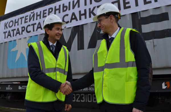 После разгрузки состава с помощью портовых кранов 57 контейнеров были доставлены на морской контейнеровоз компании Maersk и отправлены зарубежным заказчикам, сообщили в пресс-службе Уполномоченного по защите прав предпринимателей РТ. Таким образом был дан старт регулярному (в настоящее время еженедельному) движению контейнерных поездов по кольцевому маршруту порт Санкт-Петербург – Елабуга – порт Санкт-Петербург. Теперь импортные грузы для татарстанских предприятий могут доставляться в контейнерах по фиксированному расписанию «до двери» в республике, а продукция татарстанских экспортёров – в обратном направлении конечным покупателям на зарубежные рынки. «Произошло важное для Татарстана событие: мы выходим на мировой рынок контейнерных перевозок, которые составляют основу международной торговли», – подчеркнул Уполномоченный по защите прав предпринимателей, помощник Президента РТ Фарид Абдулганиев. По словам генерального директора «Maersk Восточная Европа» Жолта Катоны, планируется запуск контейнерных поездов в Татарстан и обратно из портов Новороссийска и Находки, прорабатываются прямые железнодорожные отправки товаров между РТ и Китаем.