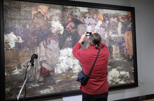 Тем не менее одна сенсация всё-таки случилась. В эти дни в Казани впервые экспонируется «Капустница» – дипломная работа Фешина в год окончания Академии художеств. На огромном полотне (2,19х3,44 м) изображена сцена из деревенской жизни, когда сельчане, невзирая на осеннюю хмарь, дружно и даже весело приступают к засолке капусты на зиму. В 1909 году автору картины вручили золотую медаль, а сама «Капустница» заняла почётное место в музее РАХ как «образец академической выучки». Но написана была картина в мастерской Казанской художественной школы, о чём есть множество документальных свидетельств. Поэтому нынешнее явление «Капустницы» в Казани можно трактовать как символическое возвращение шедевра к своим началам. Правда, не обошлось без курьёза.