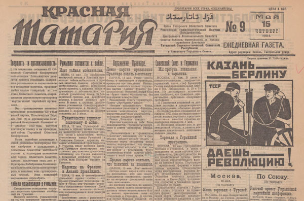 Бережно переворачиваем пожелтевшие газетные страницы «Красной Татарии» (ныне «Республика Татарстан») за 1924 год… Иногда непросто понять контекст некоторых статей или лозунгов, ведь многое изменилось за 99 лет. Вот один из рисунков: казанский рабочий по телефону звонит немецкому коллеге по трудовой вахте. Посыл из Казани в Берлин короткий, как выстрел: «Даёшь революцию!»