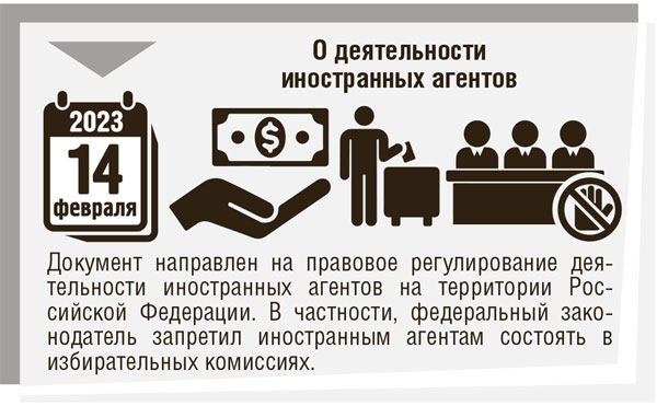 Закон Республики Татарстан №2-ЗРТ «О внесении изменений в отдельные законодательные акты Республики Татарстан» в части регулирования статуса иностранного агента от 3 февраля 2023 года вступил в силу 14 февраля 2023 года.