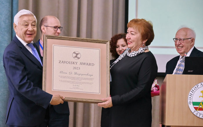 Торжественная церемония вручения премии прошла во вторник в Академии наук республики. Напомним: эта международная премия была учреждена в Татарстане в 1991 году по инициативе казанского профессора-физика, члена РАН Кева Салихова и была поддержана Правительством республики и мировым научным сообществом. Пять тысяч евро, диплом и медаль ежегодно вручаются кому-то из ученых со всего мира за выдающийся вклад в применение или развитие электронного парамагнитного резонанса (ЭПР) в любой области науки. Это дань памяти выдающемуся казанскому ученому Евгению Завойскому, который в 1944 году в лаборатории КГУ открыл явление электронного парамагнитного резонанса – уникальный метод исследования различных структурно-динамических свойств веществ на молекулярном уровне.